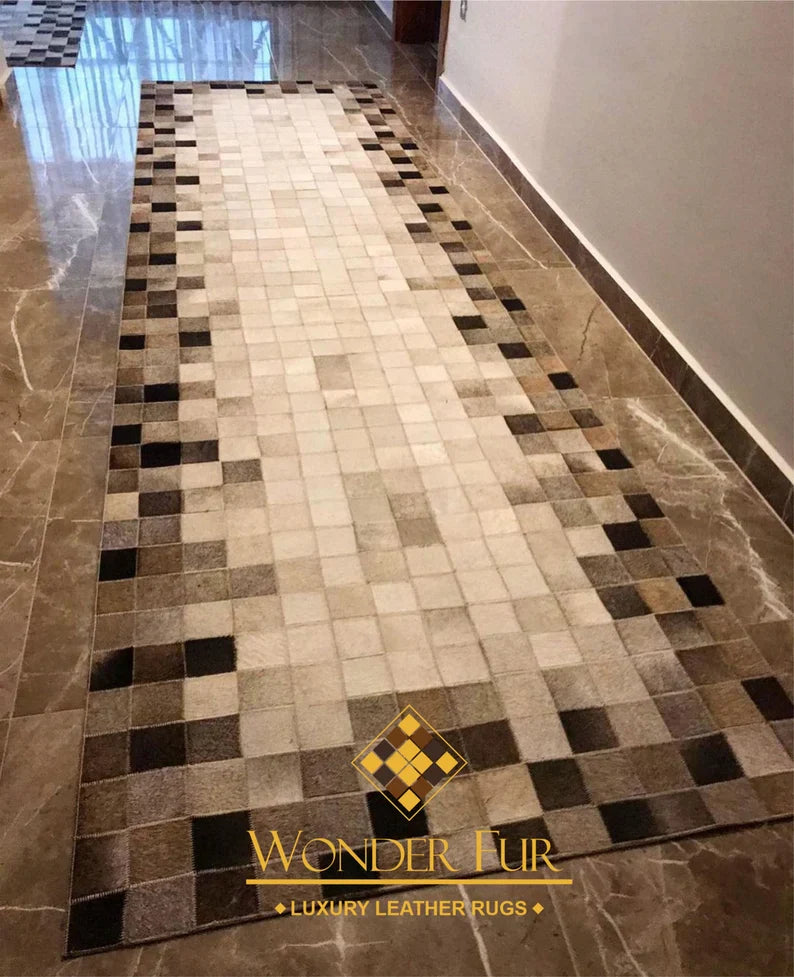 Tricolor Natural Cow Skin Patchwork Rug, Handmade Cowhide Runner Rug, Scandinavian Rug