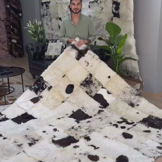 Unique Handmade Black White Natural Sheepskin, Office Soft Fluffy Rug