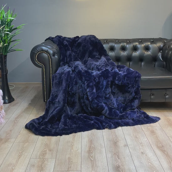 Unique Handmade Natural Rabbit fur Blanket, Fluffy Ultra Soft Throw
