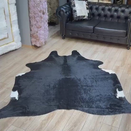 Unique Natural Black Cowskin Decor Rug, Speckled Cow hide carpet
