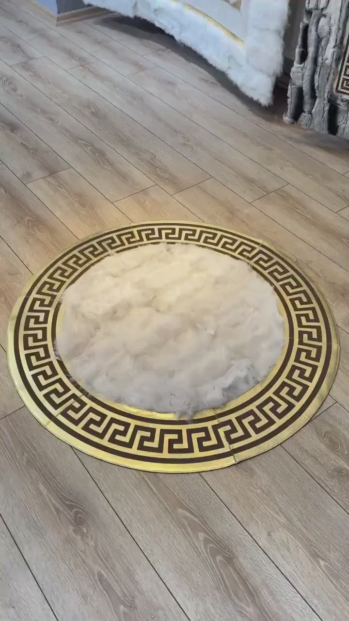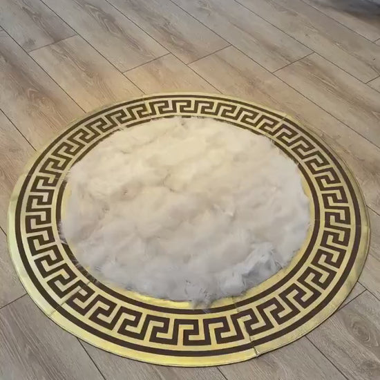 White Gold Fluffy Natural Sheepskin Round Rug, Farmhouse Home Lamb Fur Rug